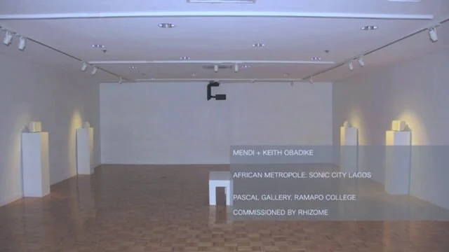 This piece is a sound installation co-commissioned by the Rhizome.org and Ramapo College. "Sonic City Lagos" is a multi-channel sound art work based on the major pathways of the city of Lagos. The artists collected samples of industrial sounds, conversations with people in the city of Lagos, and the acoustics of the city’s architecture. The installation makes use of flat panel ultrasonic speakers that project a narrowly focused and extremely unidirectional beam of sound. These speakers, placed at key nodes in the room, pan around the room driven by a computer-controlled system..